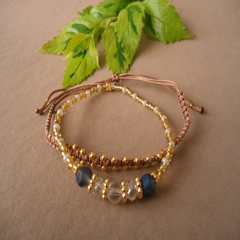 SET DE DOS MANILLAS EN HILO TEJIDO CAFE