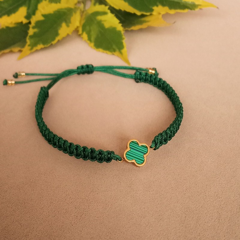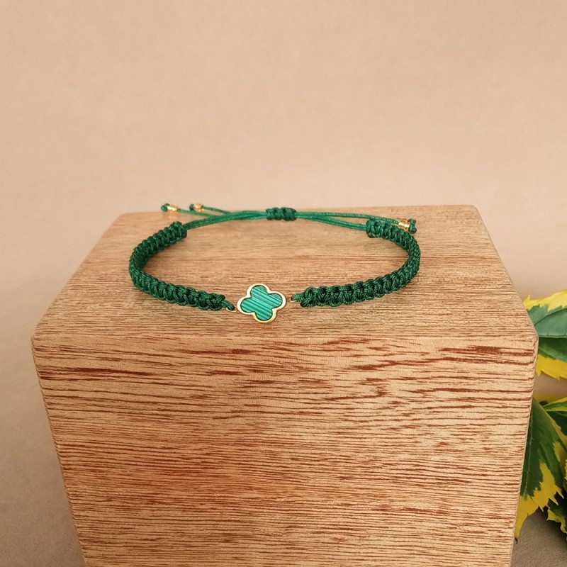 Pieza hecha y tejida a mano por artesano Colombiano. Elaborada en hilo verde esmeralda, cristales de murano color verde y champaña, con perlas, apliques dorados en oro golfilled y piedra natural ( jade verde) Diseño y color ùnico. Con ajuste de cierre personalizado altamaño de la muñeca. Accesorios que te añaden un toque ùnico y de originalidad a tu look.